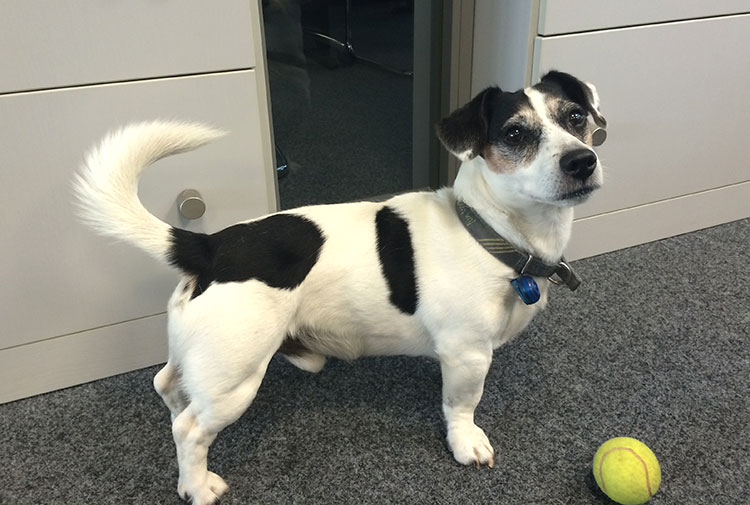 Paul, der Jack Russell Terrier unserer Kollegin gehört mittlerweile zum festen Bestandteil des Teams in unserem Unternehmen. Er sorgt immer wieder für Aufmunterung, ganz besonders wenn es gerade einmal wieder etwas stressig wird und trägt somit zur Entspannung und auch zur guten Laune bei.